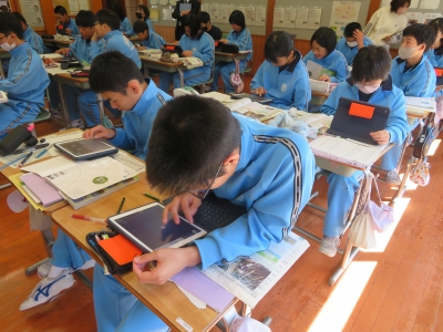 本日、2年生の社会科の授業で研究授業を行いました。近畿地方の農村部の課題やその解決策の取組について考えたり、調べたりしました。自分たちが住む只見町のことも考えながら授業に臨んでいる様子が見られました。