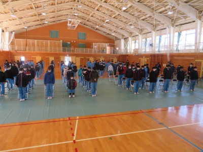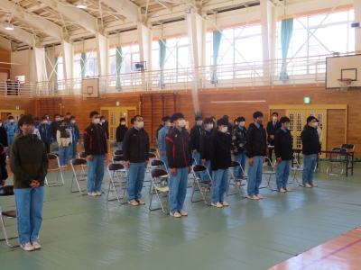只見中学校では、3月9日に行われた卒業式全体練習の前に校長先生から東日本大震災についての話がありました。宮城県の階上中学校で行われた卒業式で、卒業生が読んだ答辞を読み上げ、1分間の黙祷を行いました。