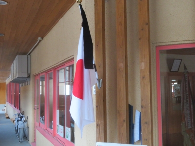 今朝の様子です。昇降口前には弔旗を掲揚しました。