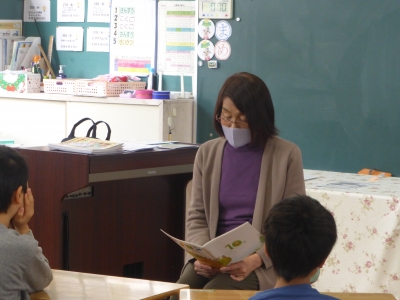 本日は、渡部様、吉津様、藁谷様においでいただきました。渡部様は昔語り、吉津様は『ボノロン』、藁谷様は『うそ』『おばけやしきなんかこわくない』をお話ししてくださいました。お忙しい中、ありがとうございました。