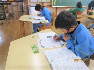 4年生は小数のかけ算の学習でした。練習問題に熱心に取り組んでいました。