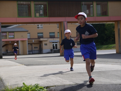 11月4日(火)の持久走記録会に向けて、各学年とも体育の時間を使って練習に励んでいますが、今日は1・2年生が本番と同じコースを試走しました。最後まであきらめない気持ちを持ってがんばっています。