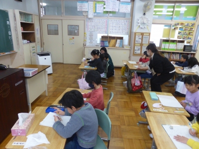1年生は、昨日おこなわれたスキー教室について、思い出に残すために作文に取り組んでいます。覚えたひらがなを正しく読んだり書いたりするためにも、ゆっくり丁寧に学習を進めています。