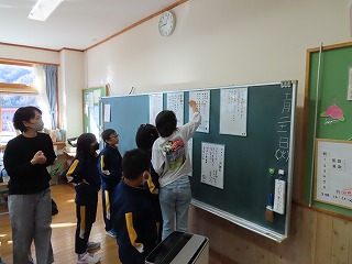 4年生の国語科の様子です。毎日の生活での感動を詩にあらわします。ホワイトボードに書き、鑑賞し合っています。