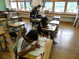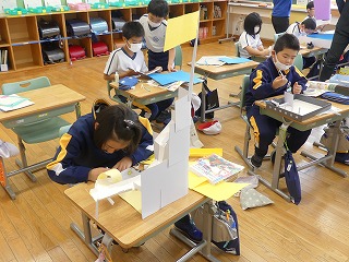 こちらは3・4年生。揃って,図工の工作に表す活動を行っていました。