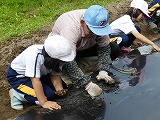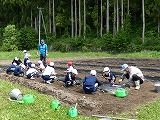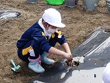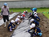 コツやポイントを地域の方から教えていただきながらの活動。土の感覚も楽しんでいました。