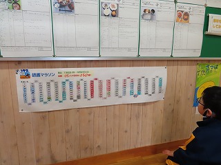 子ども達は、21日まで読書マラソンに挑戦しています。各学級ごとに目標冊数を決めて読書に取り組んでいます。