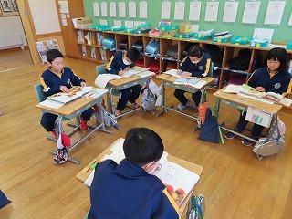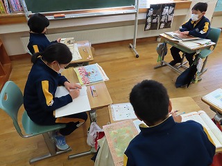 3年生の国語科の様子です。友だちに紹介するために、民話や昔話の本を読み込んでいるところです。