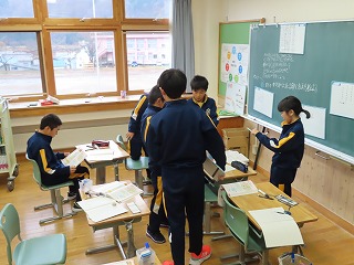 6年生の算数科の様子です。「並べ方」(順列)について、全て書き出したり、樹形図を書いたりしながら考えています。さすがは6年生です。学習リーダーを中心にして、自分たちで進めています。