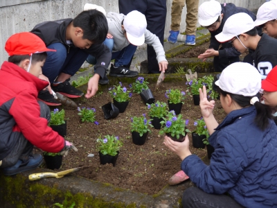 秋も深まり、学校の花壇が寂しくなってきましたが、これからと来春に向けて花を植えました。ビオラは寒さに強く、雪の下でも枯れずに来春まで花を咲かせてくれます。