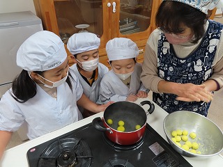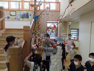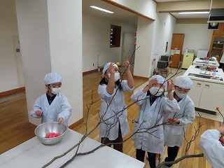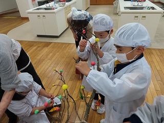 「だんごさし」の謂れ(豊作祈願)や意味,また団子の作り方や飾り方等を教えていただき、