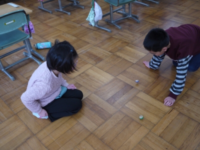 1年生が生活科で「昔遊び」で楽しんでいました。
