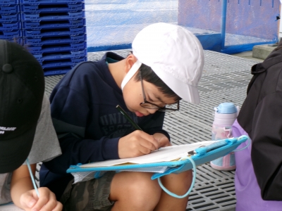たくさんの新鮮なトマトが機械によって選別される様子を見て、「すごい!」と歓声をあげていましたが、選果場の方の説明を真剣に聞いてメモを取ったり、質問したりしてより深くトマトに関わる人たちのことを知ることができました。