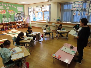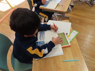 1年生の国語科「自動車くらべ」の様子です。大事な言葉を線で囲み、確かめながら学習を進めています。