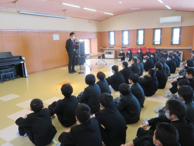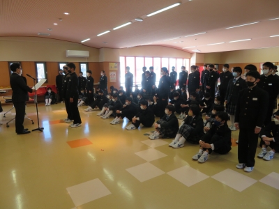 校長先生からは、「残り25日です。この数字の意味はわかりますか?この数字は、今ここにいる只中生87名が只見中学校で一緒に過ごすことができる日数です。」と1日1日大切に過ごしていってほしい等のお話しがありました。