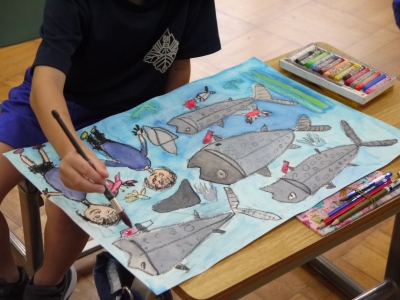 図画の作品作り、発表の練習と子どもたちは集中してがんばっています。