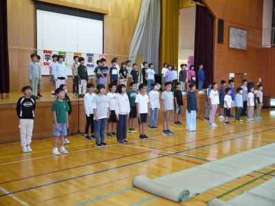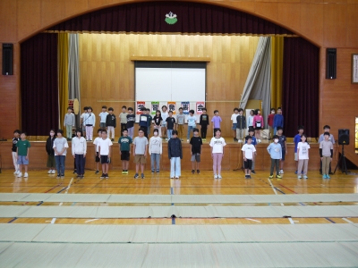上学年が低音部、下学年が高音部を歌い、きれいなハーモニーを響かせます。