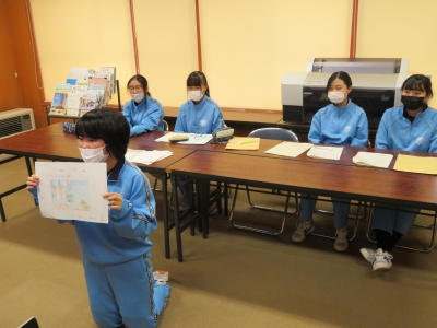 3年生の佐藤未徠さんが中心となって、説明を行いました。SDGsの中身にも触れるなど、とても充実した発表でした。