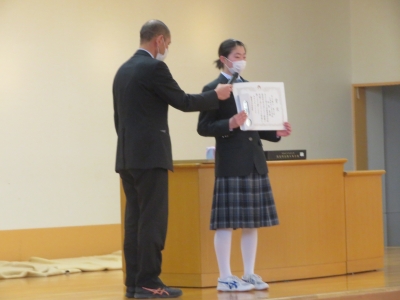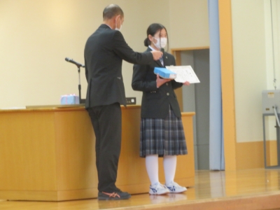 全校生の前で、受賞の報告なども行いました。