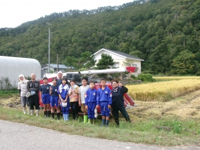 田植えの時も御指導いただいた地域の農家の方に、コンバインでの稲刈を体験させてていただきながら、収穫の喜びも味わうことができました。