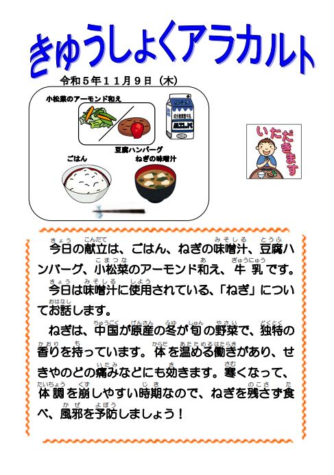 給食アラカルト11/9(木)