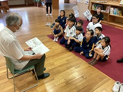 読み聞かせボランティアの方々による朝の読み聞かせです。ここちよい朝の時間を過ごせましたね。