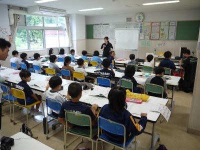 2校時に町内の2年生が集まって、音楽の合同授業が行われました。