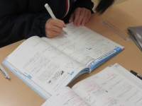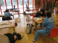多目的ホールでは、3年生が学習を行っています。数学の問題や語彙力コンテストに向けて取り組んでいます。