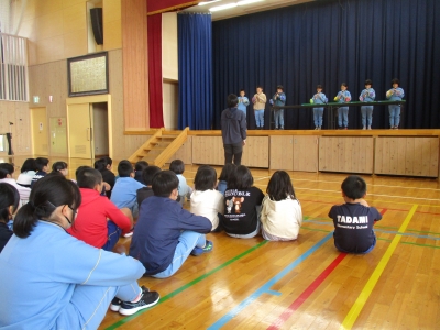 子どもたちは、教室・体育館・多目的ホール・校庭など、校舎内に散らばって遊んでいる中で、緊急の放送が入りましたが、スムーズに校庭へ避難することができました。