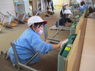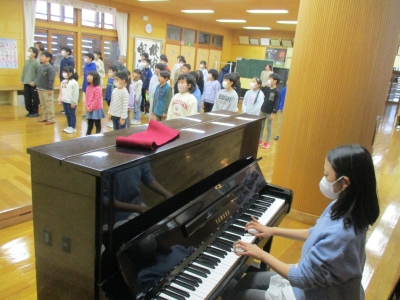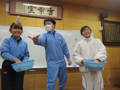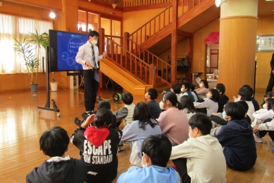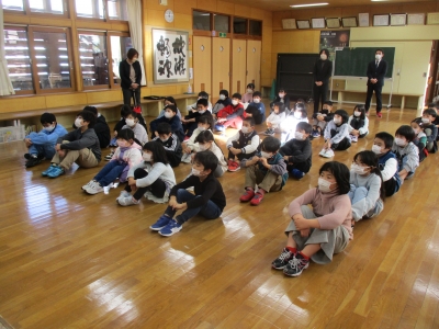 緊急地震速報が流れた始まった避難訓練ですが、「校内放送機器が故障している」という設定で行いました。