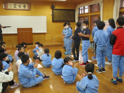 教頭が大声で情報を伝えたり、担任が大声で情報を返したり、けが人が出て養護教諭を助けを求めたり、パニックで動けない子どもがいたり、教室を飛び出す子どもがいたりと、様々な場面設定を行いながら子どもたちとともに教員も考え、学びの多い避難訓練となりました。