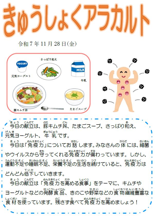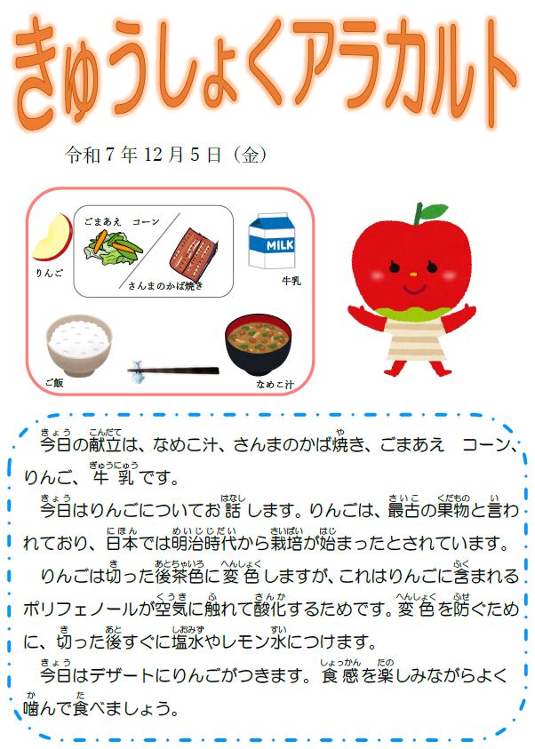 規則正しい生活ももちろんですが、食生活面も自ら見直し、健康で元気に過ごせる体づくりを行っていってほしいと思います。