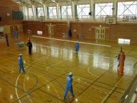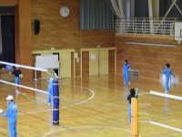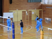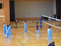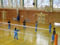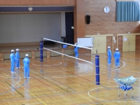 <1年生>保健体育…バレーボールの授業です。ネットを挟んでラリーを続ける練習です。
