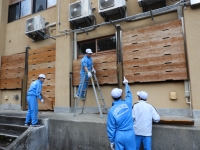 本格的な冬の到来に向けて雪囲いを設置しました。