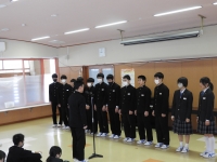先日、行われた数学技能検定、県中体連スキー大会の表彰・受賞報告を行いました。