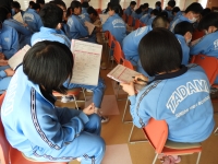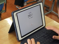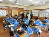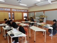 <1年生 英語>…チェックテストをタブレットで行っていました。すごい集中力です。